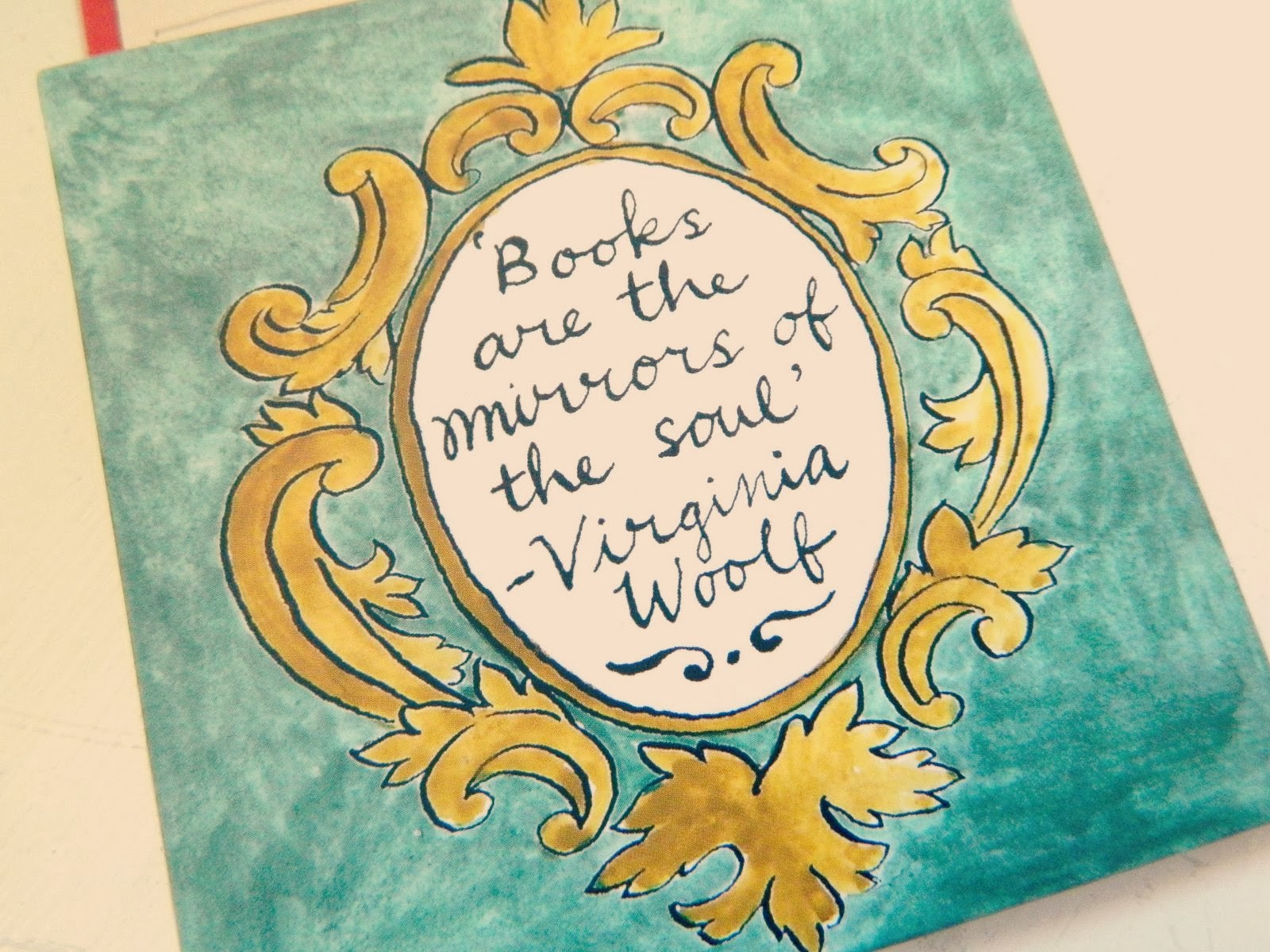 I surprised her with this large painting which I did as one of her Christmas gifts. The portrait depicts her with books and a typewriter...All in colors of her bedroom and a sweet quote from The Book Thief. ( We also took her to see The Book Thief movie as a Christmas gift) We loved it. She reallly loves the painting. I must say I think it looks pretty darn cute in her room too.